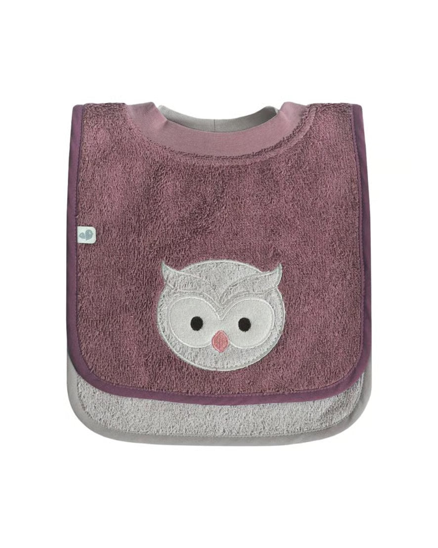 Lot de 2 bavoirs hibou Perlimpinpin mauve et gris